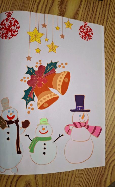 Regardez avec quel soin elle a donné vie à ces boules de Noël scintillantes et à ces joyeux bonshommes de neige ! Chaque trait témoigne d'une belle créativité .